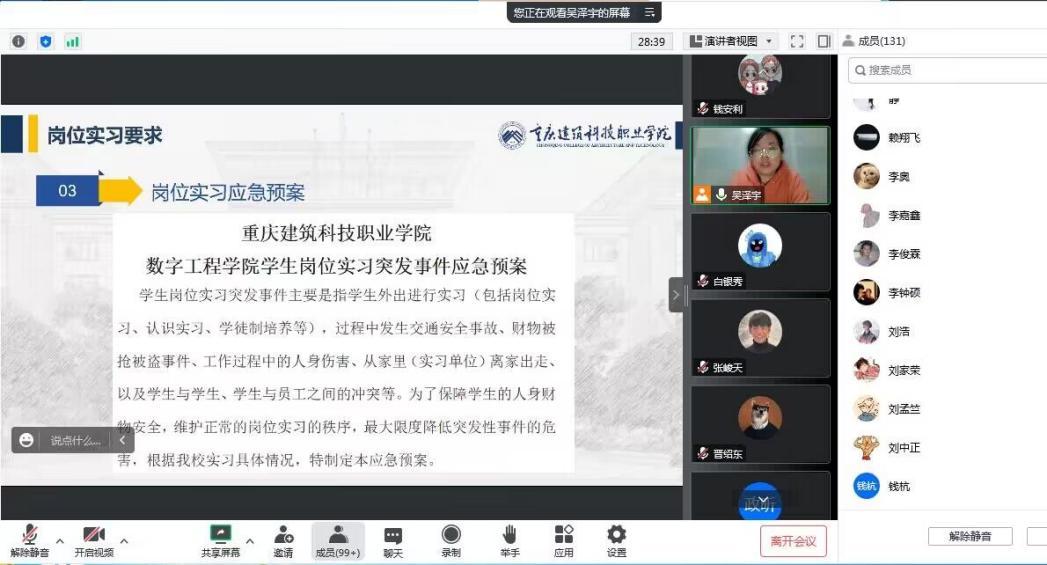 《数字工程学院学生岗位实习突发事件应急预案》文件宣讲