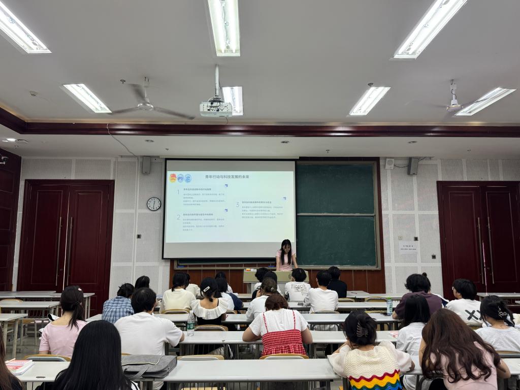 团总支·学生会主席团成员熊丽号召全体成员:“要以钱学森等老一辈科学家为榜样,将马克思主义理论融入科技创新实践,在解决实际问题中提升创新能力。”他强调,青马学员需发挥带头作用,带动更多同学投身科技实践,让创新成为青春远航的动力。