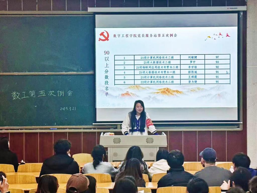 2023年3月21日,党员服务站数字工程学院分站在笃学楼2205开展第五次例会。本次例会由党员服务站数字工程学院分站骨干牟春红主持。数字工程学院22期、23期、24期的入党积极分子参与了此次会议。