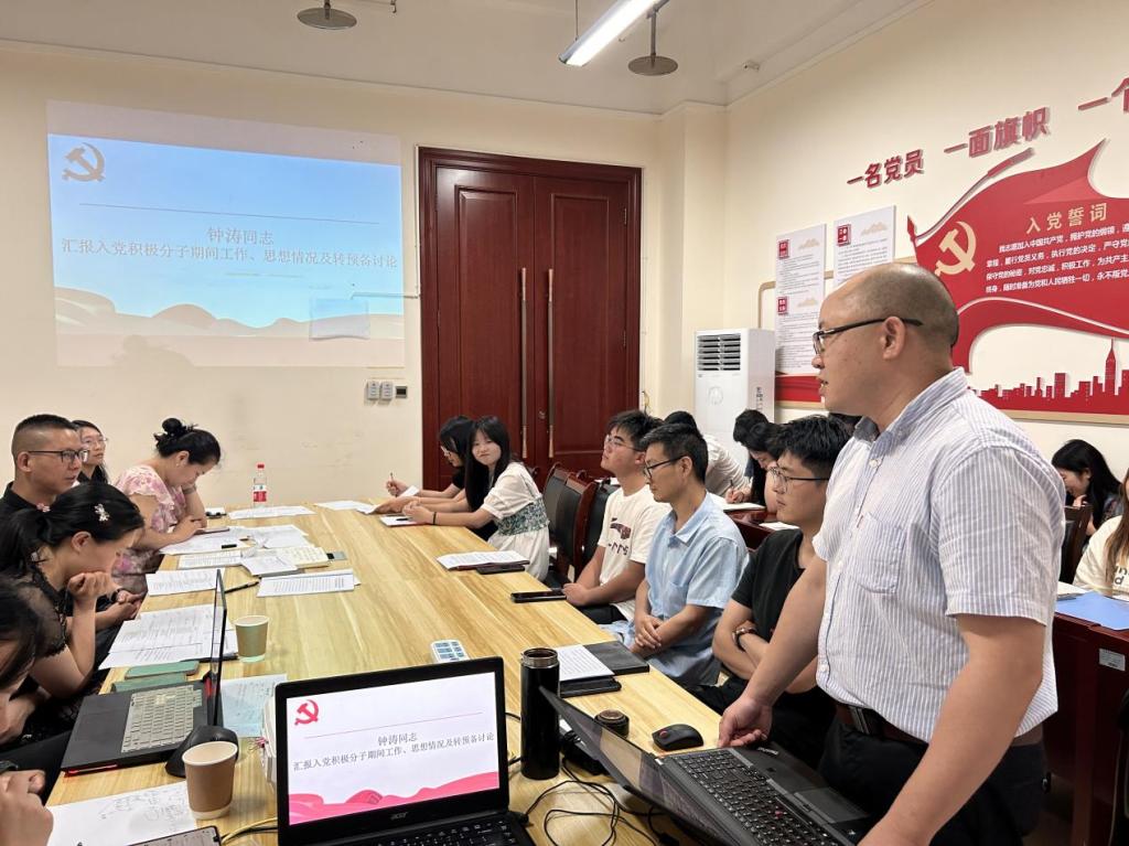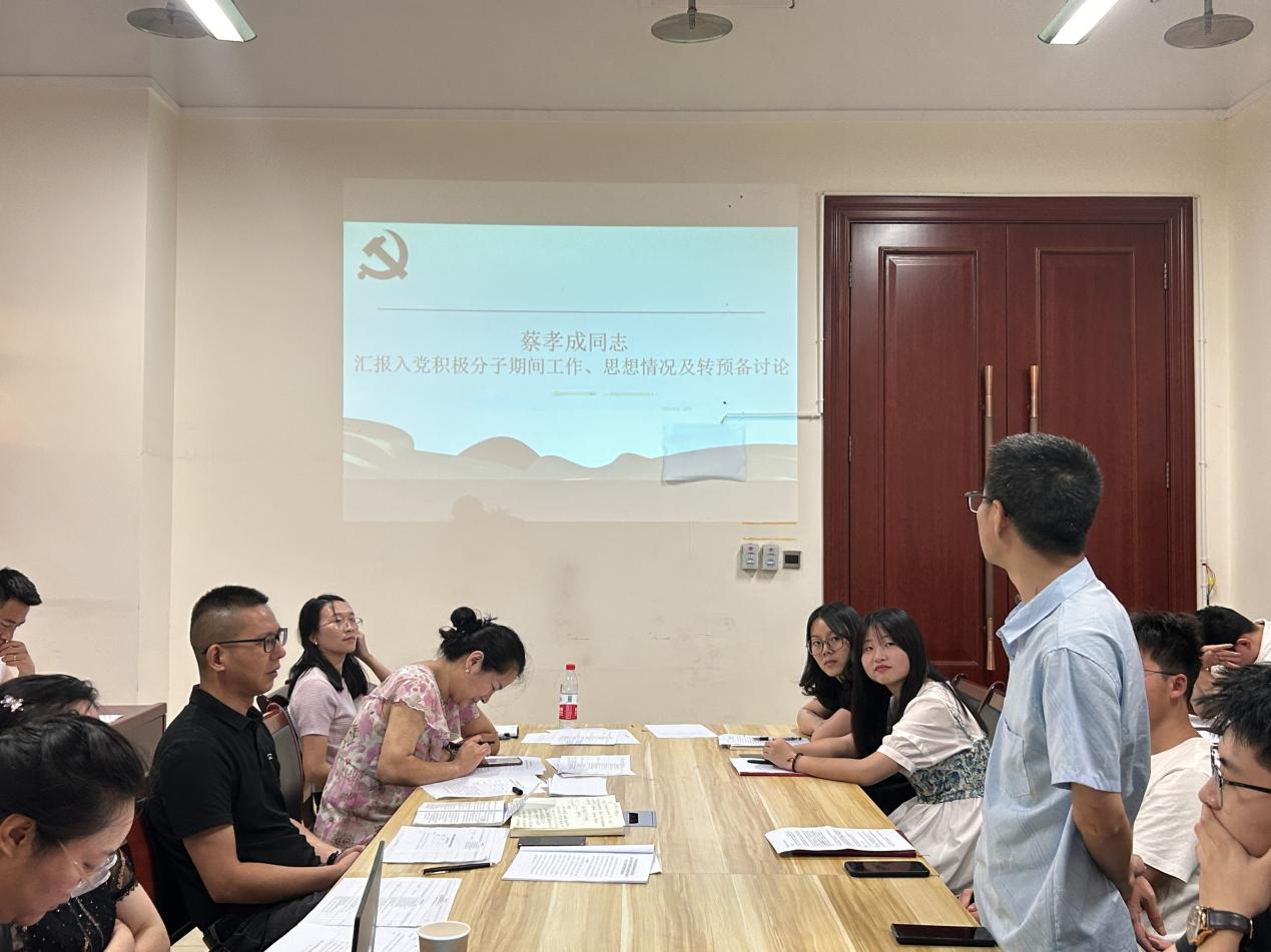 会议伊始,陈俊名、钟涛、蔡孝成3名同志依次向党支部汇报自入党积极分子以来在思想、工作、生活等情况。由入党介绍人介绍了三名同志在发展期间的主要情况并表明愿意介绍三位同志加入中共共产党,与会同志纷纷提出同意按期转正的意见。
