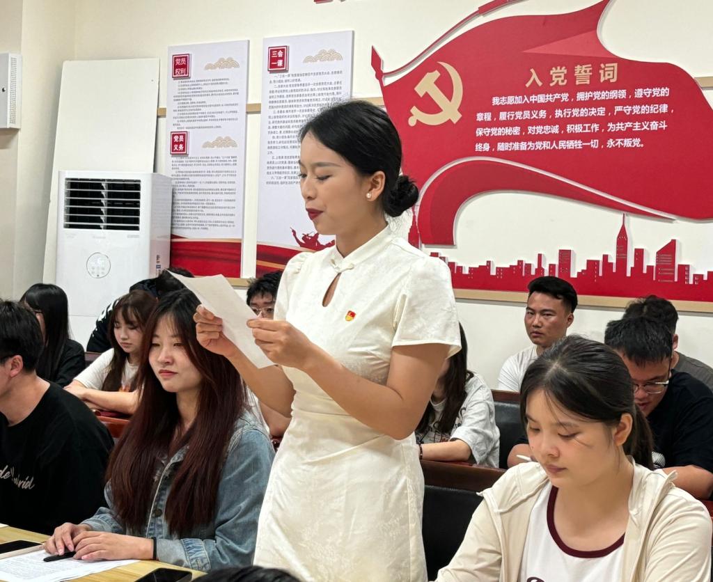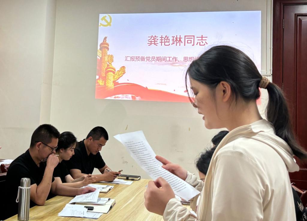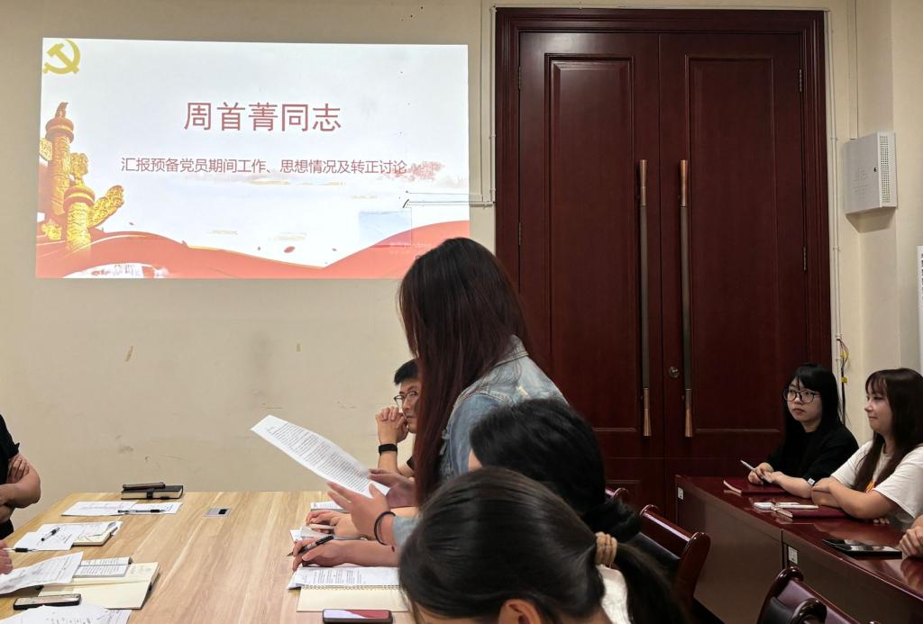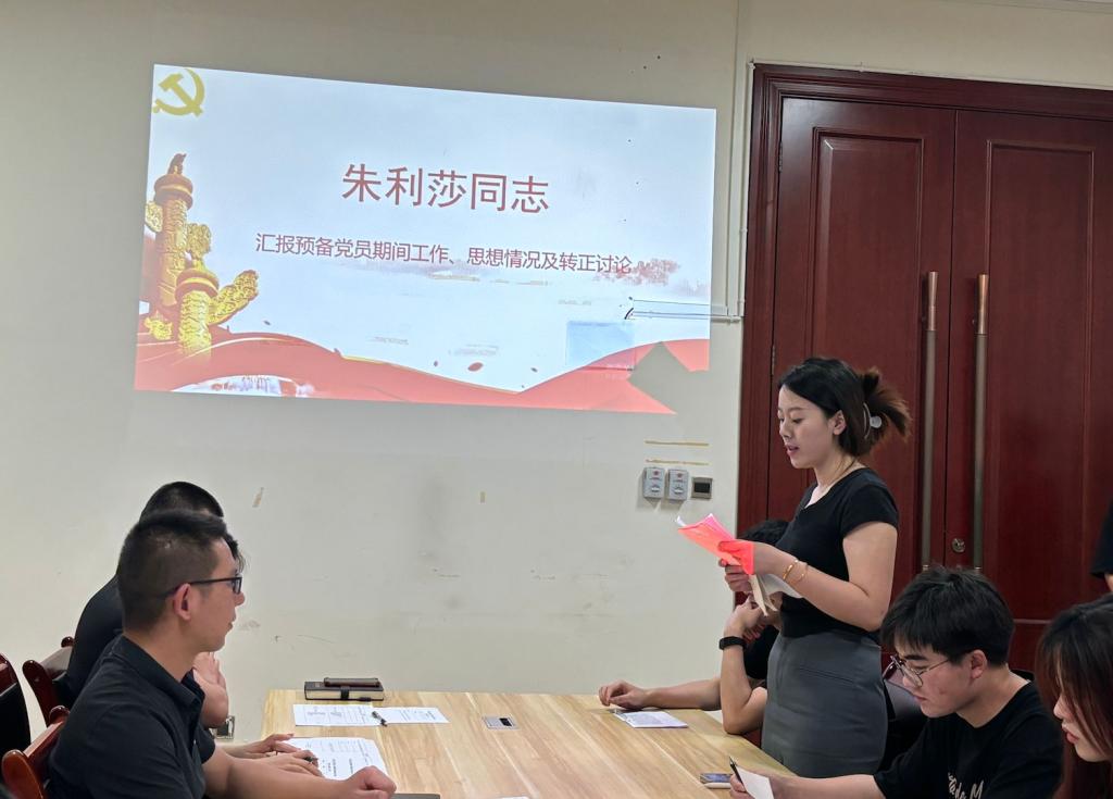 本次会议主要朱利莎、李学培、周首菁、邓晏、龚艳琳五名预备党员转正事宜进行了讨论。会上五名同志详细汇报了自己的思想认识、工作表现以及对党的理论学习情况,表达了成为一名正式党员的坚定决心