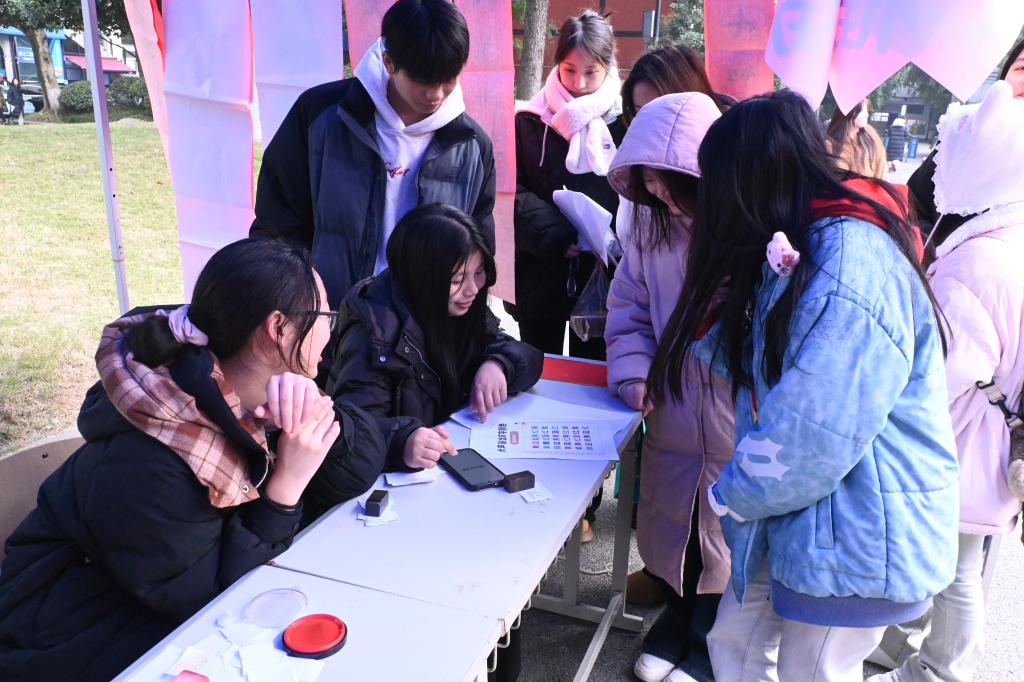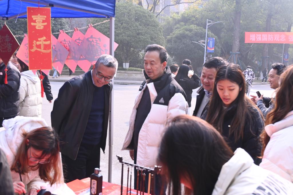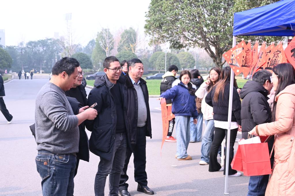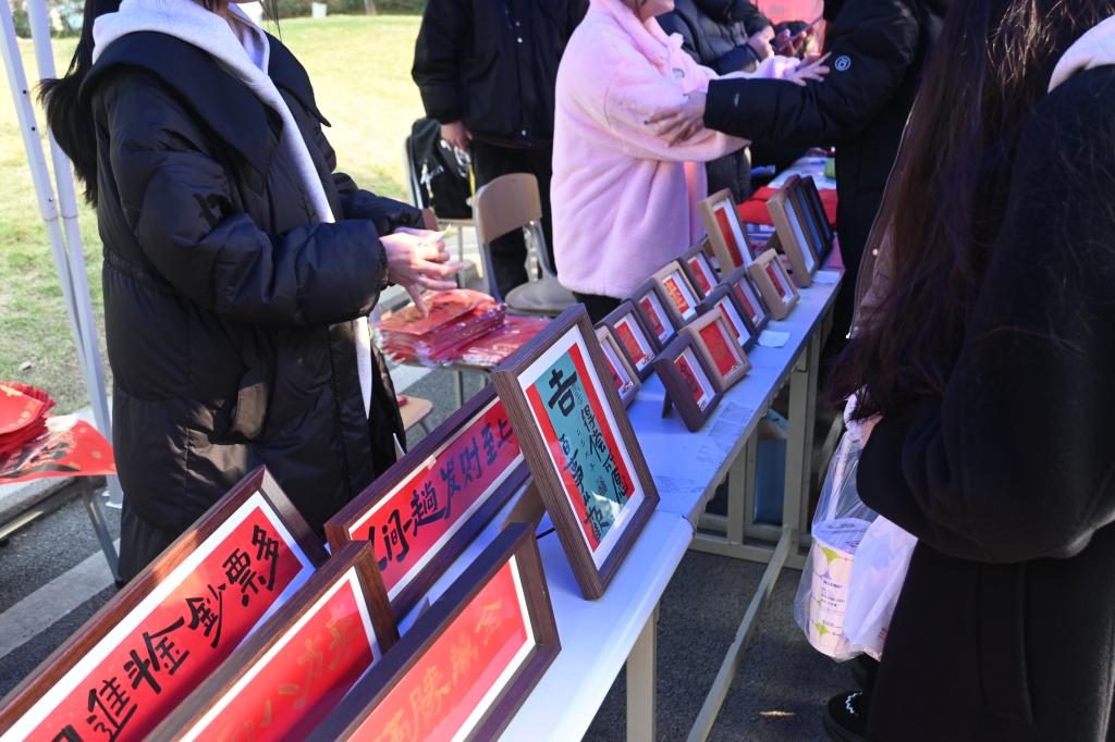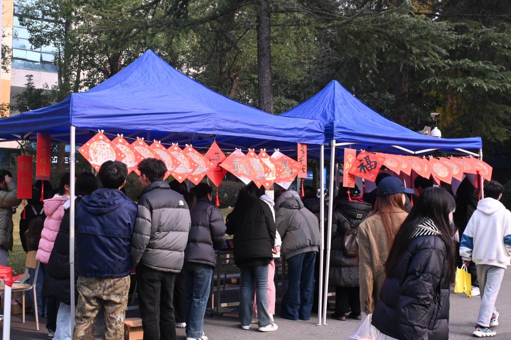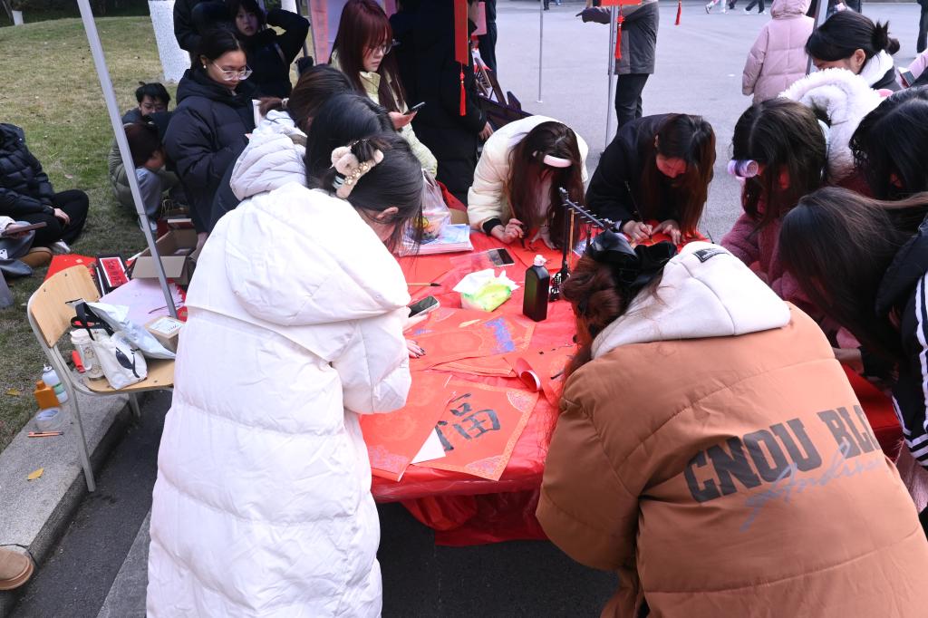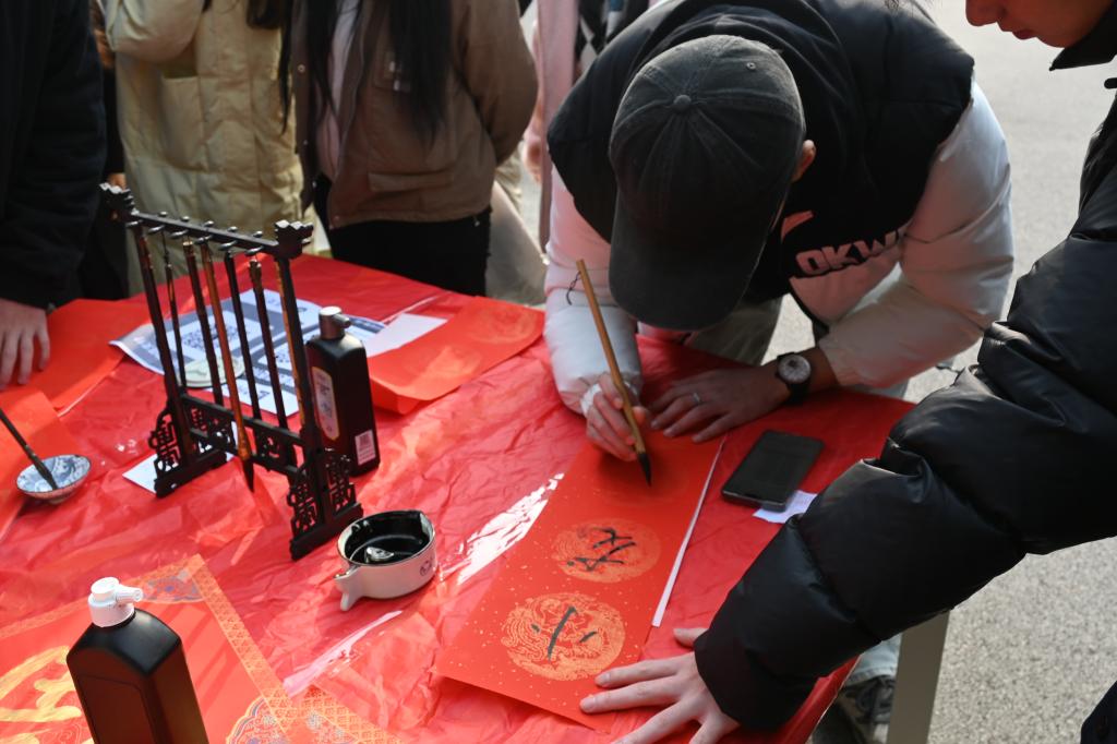 除了写春联外,现场还设置了互动环节。学生们纷纷交流心得、欣赏彼此的作品,并互相送上新春的祝福。活动现场热闹非凡,欢声笑语不断,大家都沉浸在浓厚的节日氛围中,享受着这份难得的欢乐与温馨。