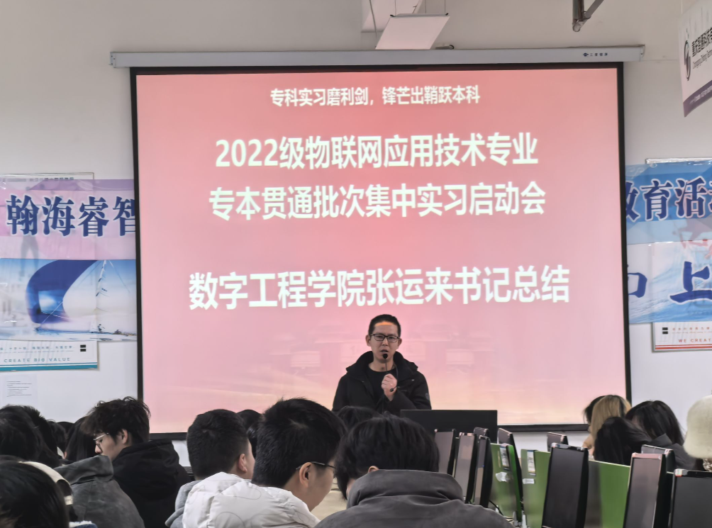 此次集中岗位实习启动会的成功召开,为数字工程学院物联网应用技术专业专本贯通批次学生的实习之路指明了方向,这不仅是一次简单的实习启航,更是专本衔接进程中的关键助推。期待同学们实习结束,带着企业给予的宝贵实践财富,以更加成熟、自信的姿态回归学业深造之路,无缝对接本科课程,为未来在物联网行业的深度耕耘储备充足能量,进而开启属于专本贯通学子独有的精彩职业华章。