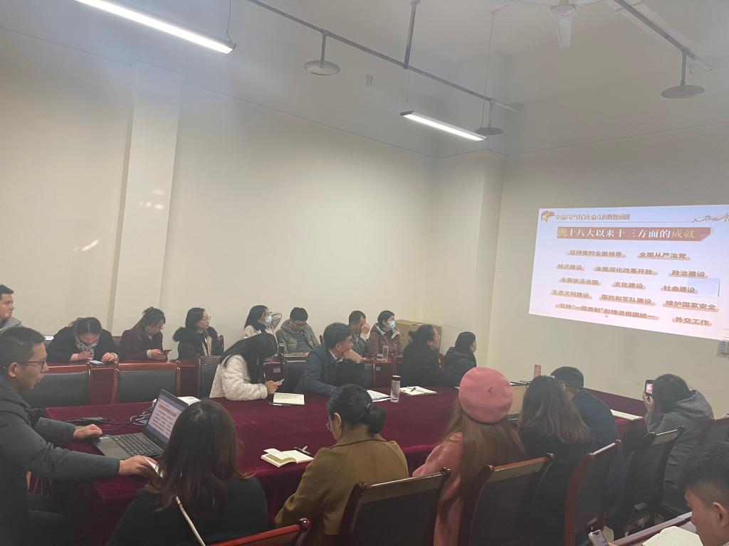 会前,张运来书记介绍了党的十九届六中全会精神背景和议程,提出深入学习的要求,并强调党的十九届六中全会全面总结党的的百年奋斗重大成就和历史经验,是一次具有里程碑意义的重要会议。会中,分别从一个历史定位到二十大继往开来踏上新的赶考路解读了全会中的数字意义,深刻认识中国特色社会主义新时代的、历史性成就与变革式发展。张书记强调我们必须从党的百年奋斗历程中汲取智慧和获得力量,将本次学习的重大精神作为砥砺前行的行动指南,做到帮学引导自学,将全会精神落实落细实际工作、学习及生活,并让全院党员教师结合自身实际撰写心得体会。