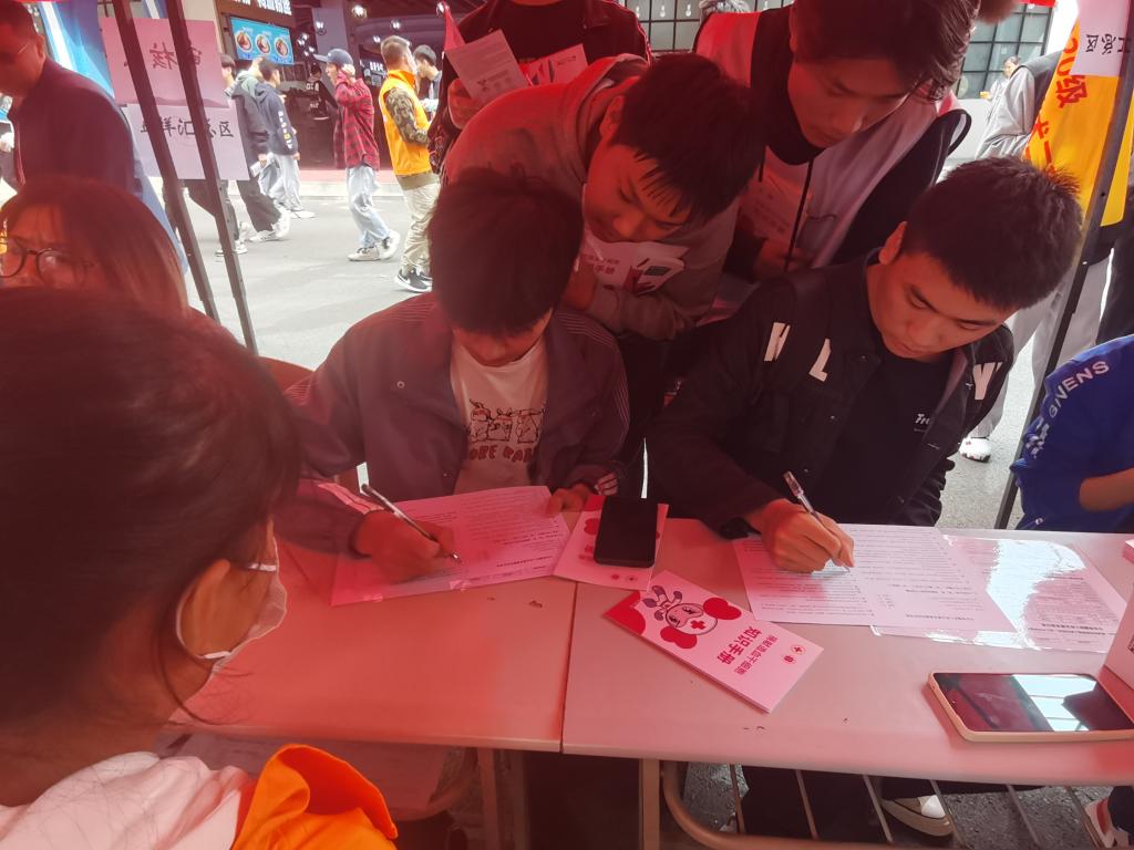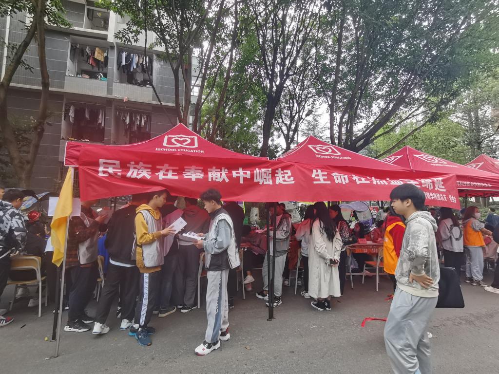 现场工作人员为所有献血的同学送上了牛奶、饼干、纪念品和亲切的问候,鼓励他们不要紧张,让爱心温暖着每一位献血人。志愿者指导献血者填写献血征询表,引导献血者按流程登记采样,并且解答献血者的问题。