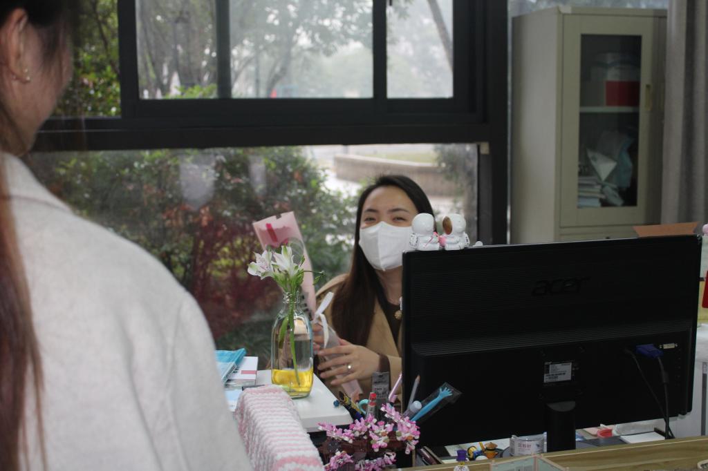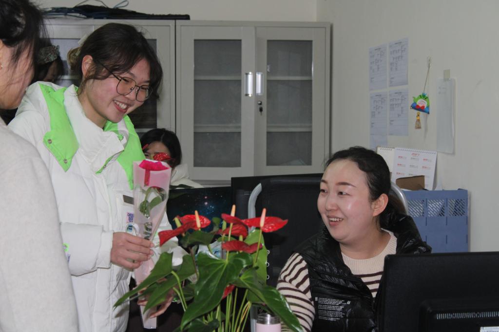 这一天,她们是被鲜花和幸福包围的一天”为数字工程学院默默付出的女老师们享受到女神的幸福和快乐,感受到来自同学们的关和问候。数字工程学院团总支·学生会于当天上午便早早守候在3513办公室为每位女神送上鲜花和祝福愿她们能领略流金岁月里的温柔芬芳,也能成为自己火热世界里的女王。鲜花和笑脸交相辉映,烘托出温馨祥和的节日氛围一支花朵一份爱,一份祝福一份情。