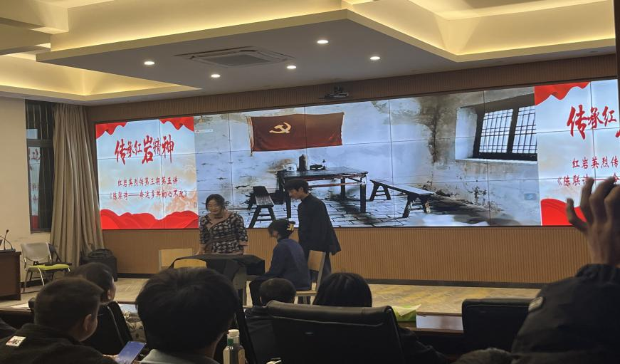 2023年11月16日18:00数字工程学院团总支在大数据中心举办了以陈联诗为主题的第三期第五讲红岩英烈转的表演,使陈联诗的英勇事迹得到了生动的演绎。