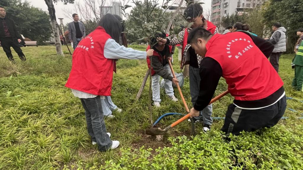 当天上午,数字工程学院讯方技术创新协会与学生会相关部门携手陈家桥学林社区,三方联动开展“植树在当代,得益在下代”植树节活动,出席本次活动的有讯方技术班主任马明曲老师、学生会主席、讯方技术创新协会会长以及20余名成员。