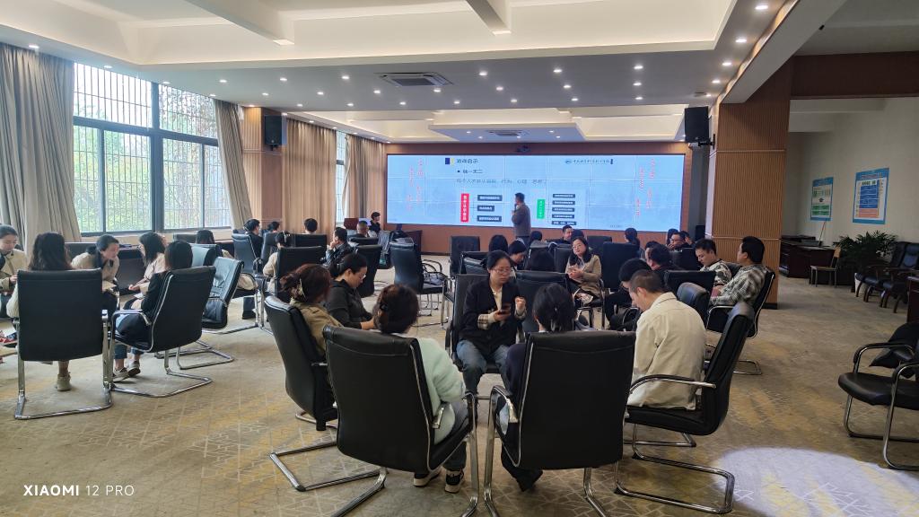 随着两轮游戏的结束,活动迎来了第二项,经典案例分析——“解忧杂货铺”。在老师们的掌声中,冉倩老师也走上发言台,为各位老师分享自己在教学工作中遇到的案列并向各位老师寻求帮助。随后通过击鼓传花的游戏选出了几位老师并通过讨论为冉老师提供了相应的解决方案,冉老师也对各位老师的方案表示感谢。