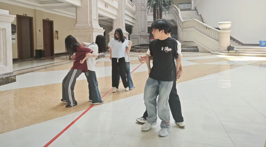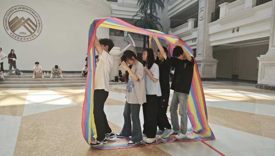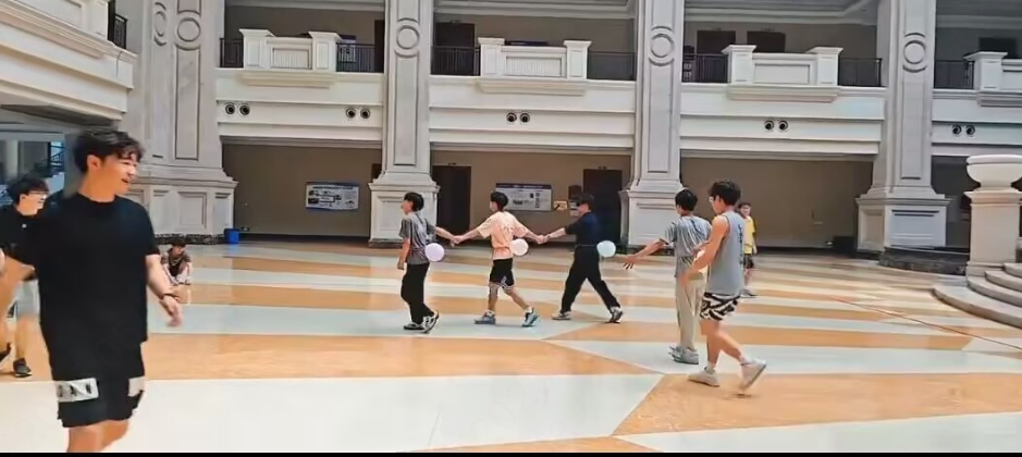 “盲人摸象” 环节作为破冰项目率先登场。蒙眼的同学们需通过触摸和沟通,猜出班级同学的身份,在欢笑与摸索中迅速拉近彼此距离。随后的 “背气球接力赛” 则将气氛推向高潮,两人一组背对背夹气球冲刺,既要保持平衡,又要与下一组无缝交接,一次次气球的破裂声与加油呐喊声交织,让陌生感荡然无存。
