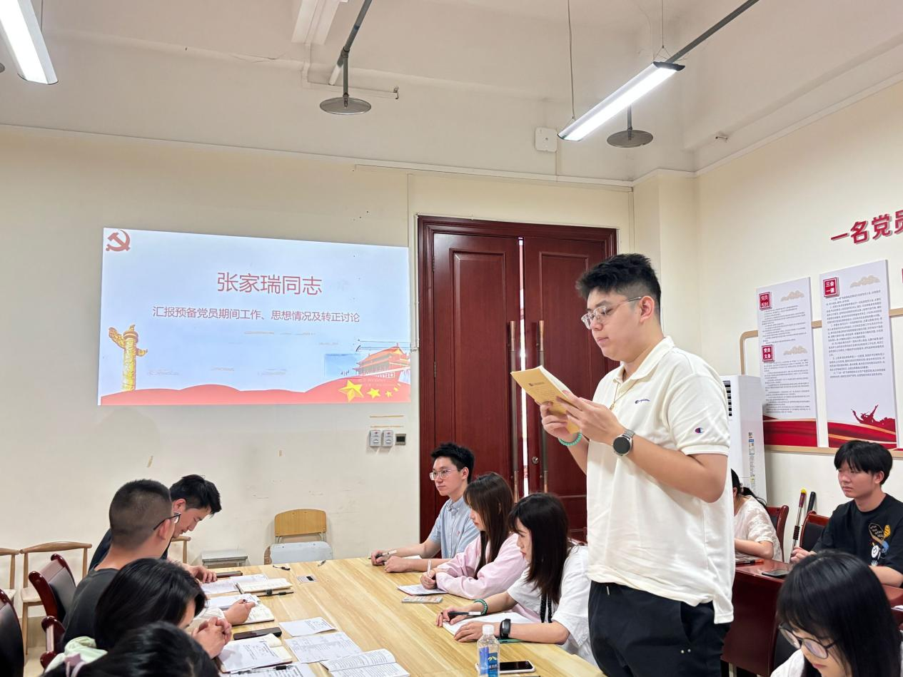 2025年5月28日,数字工程学院党支部召开正式党员接受讨论会,对陈俊宇、罗巧巧、何青妍、张家瑞、宋欧阳、杨元坤共六位同志的转正申请进行讨论与审议,会议由支部书记张运来主持,支部全体党员积极参加。