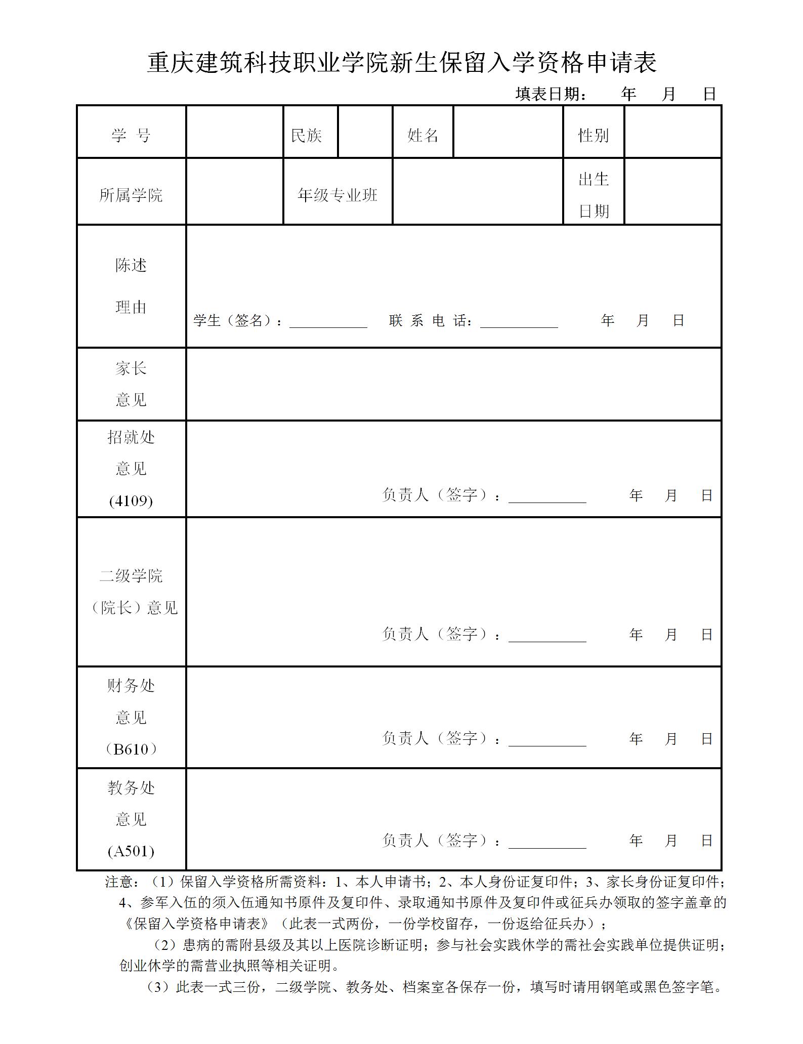 上一篇:休学申请表 下一篇:复学审批表