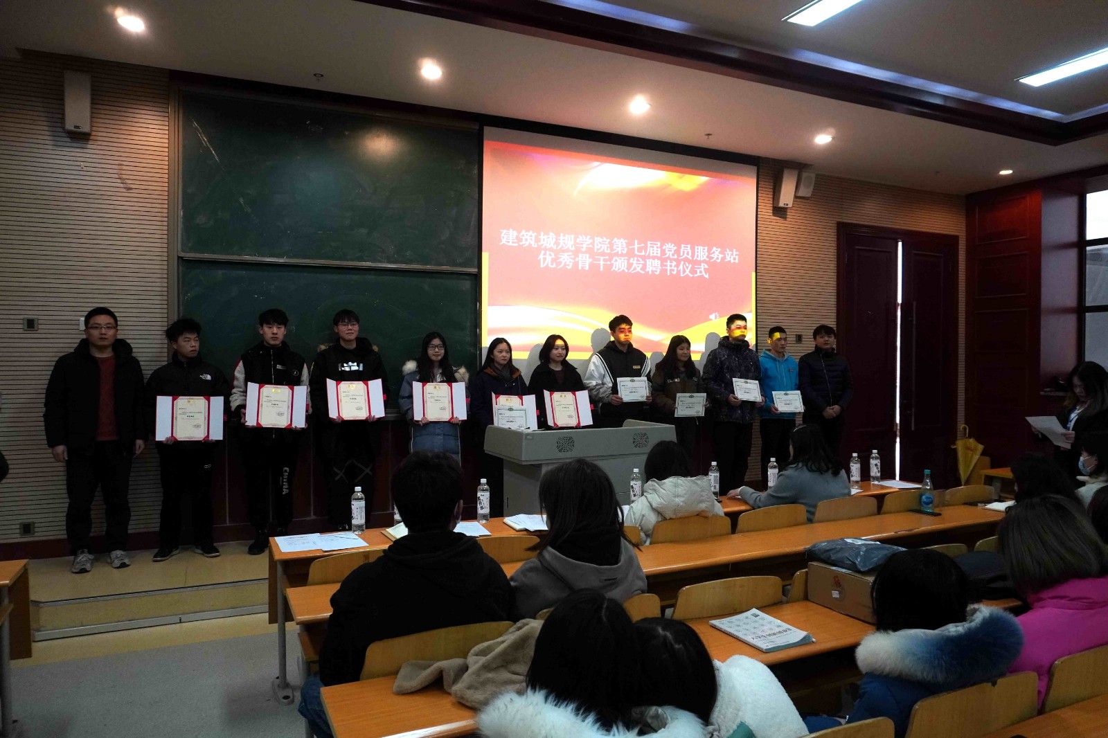 在上年的工作中涌现出大批的优秀工作者,经过评选,最终确认了优秀骨干人选,并由党支部专职组织员郭静秋老师宣布了第七届建筑城规学院党员服务站骨干名单并颁发聘书。