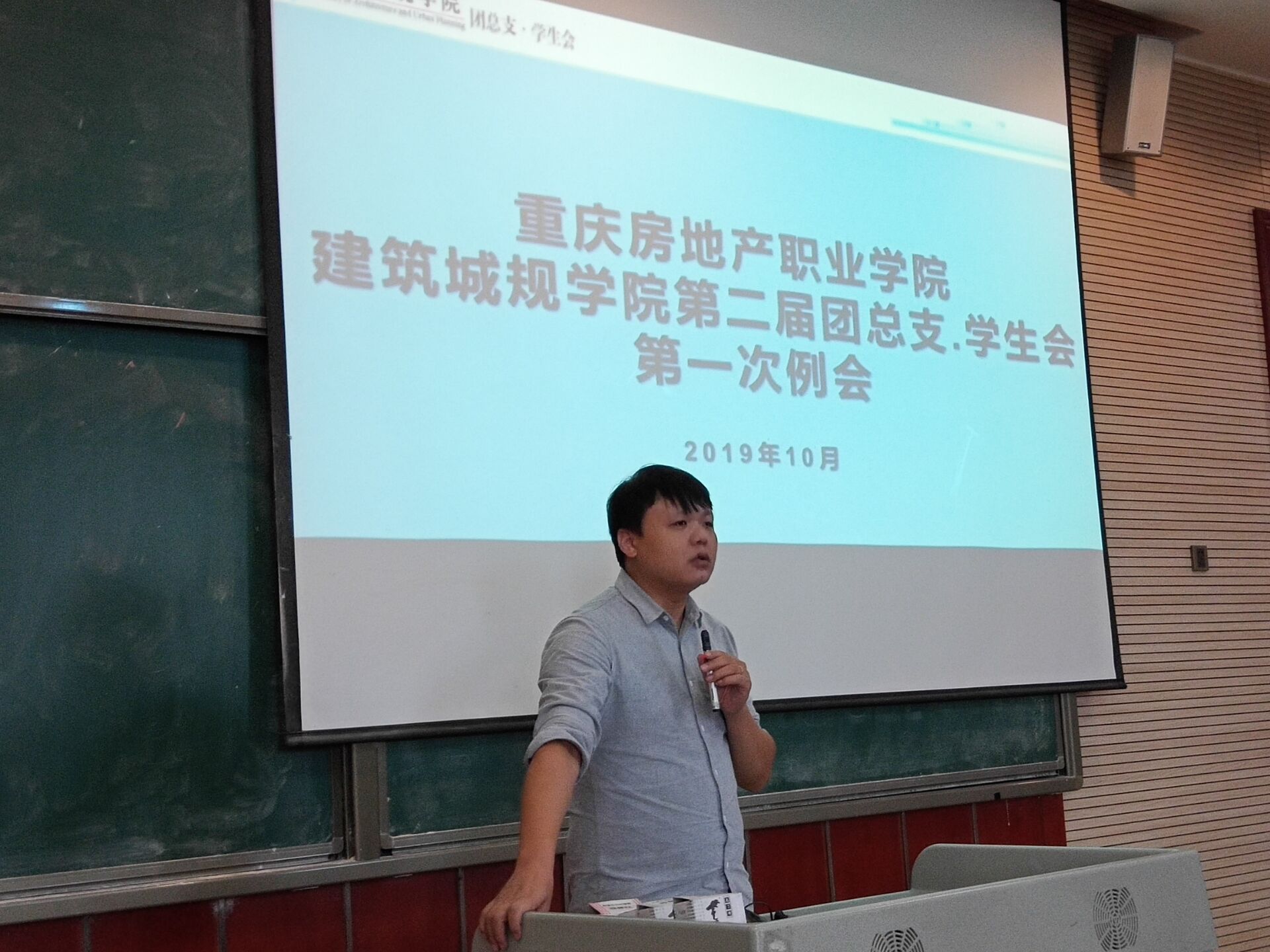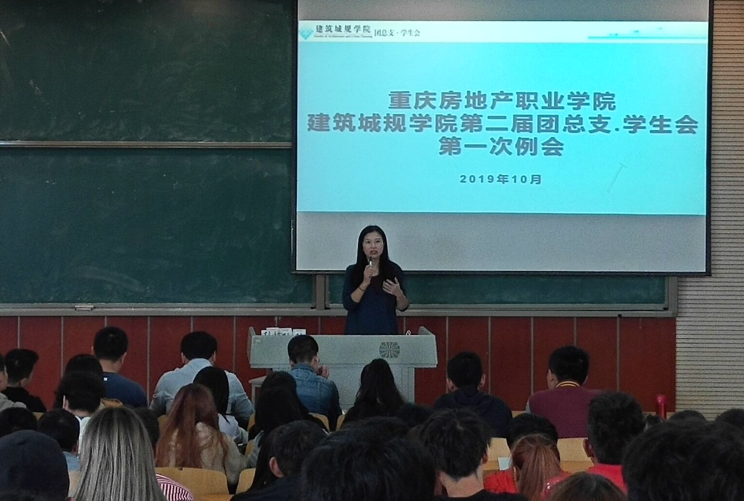 2019年10月11日,建筑城规学院团总支·学生会在笃学楼1305教室召开本学期第一次全体例会。建筑城规学院副院长彭丽莉,党支部副书记崔艳清,团总支书记王玉明,2019级辅导员刘小进以及团总支·学生会全体学生参会,此次例会由学生会副主席徐韵灵主持。