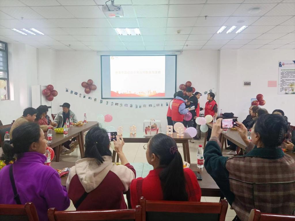 为大力弘扬孝老爱亲优良传统,展现爱老、尊老、助老的良好社会风气,全面发展大学生综合素质,11月29日,我院党员服务站、团总支·学生会组成的20余人志愿服务队,走进虎溪花园社区,开展“为长者祈福,给老人过集体生日”志愿服务活动。