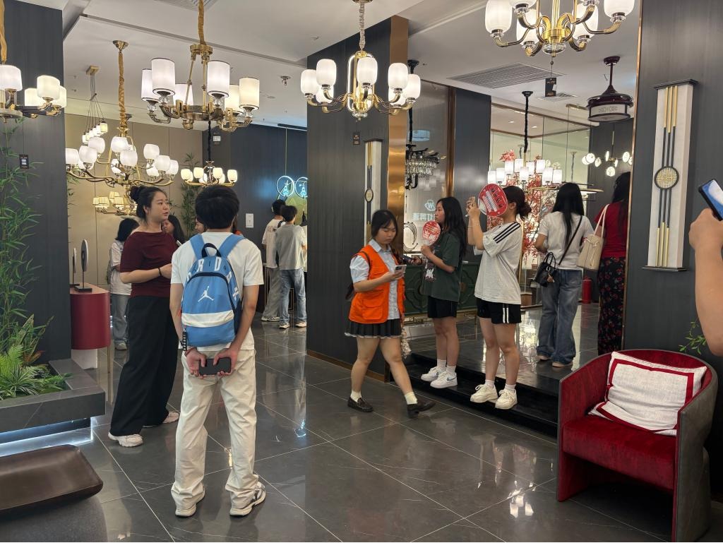 在居然之家园博园店的深度探访中,学生们如同走进一座流动的“现代家居博览馆”。在专业导览与教师讲解下,大家系统考察了馆内汇聚的国内外一线家居品牌,从高端定制到智能整装,从新中式雅韵到国际前沿设计,全方位感知了当前家居市场的多元化格局、材料工艺的创新突破以及消费升级的最新趋势。品牌展厅不仅是产品的陈列,更成为解读设计理念、施工技术与市场需求的立体教科书。
