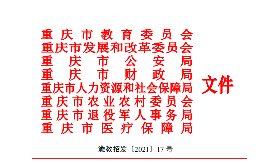 各区县(自治县)教委(教育局、公共服务局)、发展改革委、公安(分)局、财政局、人力社保局、农业农村委、退役军人事务局医保局,有关本科高校,各高职院校,市教育考试院: